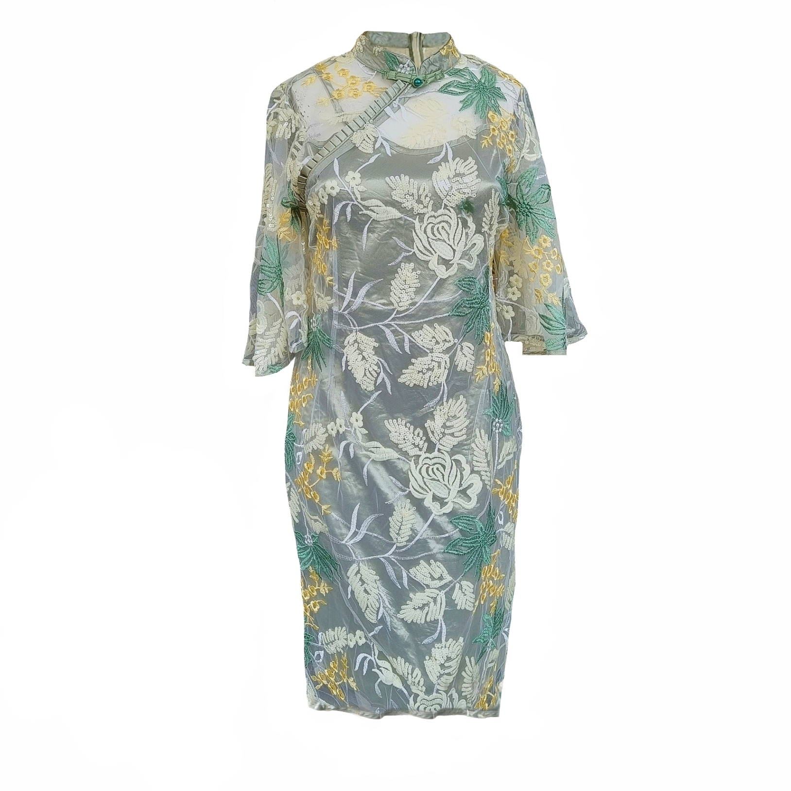 - جزئیات- پیراهن مجلسی زنانه وارداتی سبز رنگ آستین کیمونویی - جنس پارچه دانتل همراه با پولک دوزی - دارای یقه ایستاده کوتاه - قد کار 100 سانتی متر - قد آستین 40 سانتی متر - جدول سایز در عکس آخر